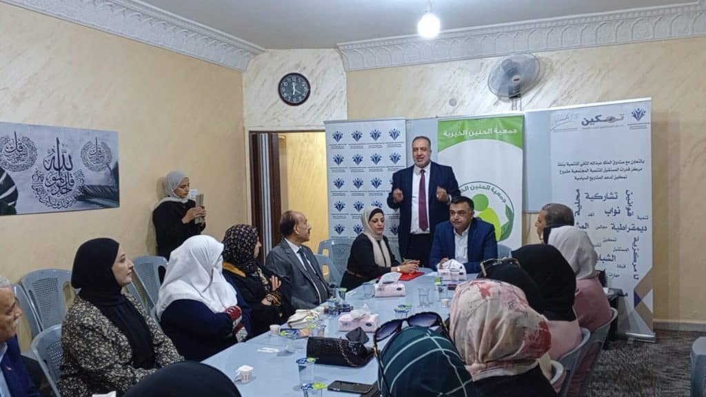 وقال النائب السابق الأستاذ أحمد الجالودي ورئيس مجلس إدارة جمعية الحنين بأنه لابد من ضرورة تعزيز الوعي السياسي والقانوني للمشاركة الفاعلة بين الشباب والنساء في محافظة العاصمة ولا سيما في منطقة شرق عمان ومنطق طارق وضرورة تشجيع الشباب والشابات على المشاركة في الانتخابات المحلية والبلدية من خلال التوعية والتدريب ، ورفع الوعي بالتشريعات القانونية الناظمة للمشاركة المدنية والسياسية والعمل الحزبي.